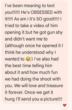 "Thank you again for the photo shoot, and for being so patient with our crazy grumble. I did dry out & have time to get changed before my meeting that day, & everybody was snoozing in the car before I got to the interstate :) I can’t wait to see what you captured, as I know they will be magnificent!!!"